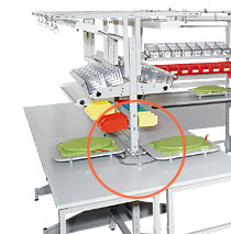 天板上に設けたUターン用レールは、簡単に取り外しが可能でレールを取り付けると台板を狭い面積でUターンさせることができます。レールを外すと天板上で普通の作業テーブルとして使用できます。 ※天板タイプとレールタイプを自由に組替え可能。
